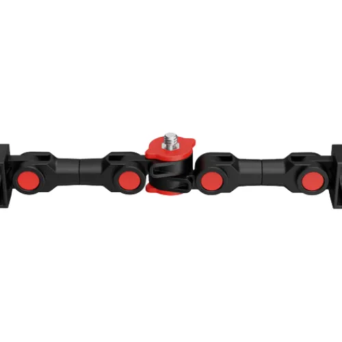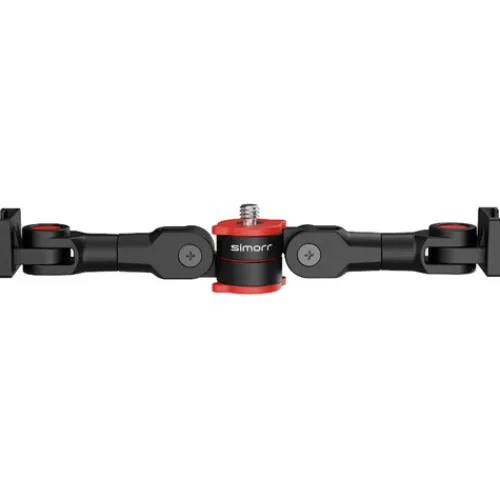 The Simorr Dual Cold Shoe Extension Bar from Smallrig allows you to attach multiple accessories simultaneously, including small LED lights, microphones, and other equipment. It features a 1/4″-20 socket at the bottom and four fully adjustable sections for versatile positioning. With a compact and lightweight design, this extension bar folds down to a portable size of just 3.3″, making it easy to carry and perfect for on-the-go setups.