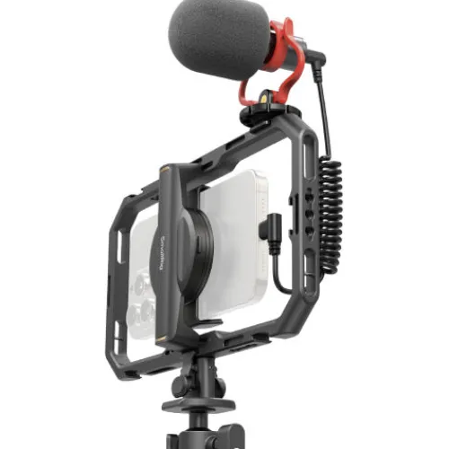 The SmallRig All-in-One Video Kit For Smartphone Creators with Audio and Lighting System Full Quick Pro Edition 4704 is the ultimate solution for professional smartphone video production. This comprehensive kit includes a universal smartphone cage, a rotating quick-release handle, a quick-release metal tabletop tripod, a shotgun microphone, a bi-colour fill light, a power bank clamp, a 2-in-1 USB-C PD fast charging and audio adapter, and additional accessories. The upgraded universal cage is equipped with multiple 1/4″-20 threaded holes and cold shoe mounts, allowing for the attachment of a variety of professional video equipment. It also supports 67mm magnetic filters, and features a shoulder strap hole and dock mounting slot for added convenience. With this all-inclusive kit, creators can easily elevate their mobile videography with enhanced audio, lighting, and stabilisation.