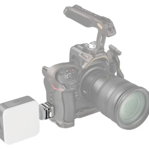 The SmallRig HawkLock H18 Quick Release Support with Cold Shoe 4500 offers a secure quick-release solution for cold shoe accessories like LED lights and microphones. It includes a cold shoe adapter and a baseplate with an anti-detachment column and groove design, which locks accessories in place and holds up to 0.800kg. Silicone pads on the adapter provide stability and prevent scratches. The baseplate’s spring-loaded pins add further security, making it compatible with SmallRig action camera cages with locating holes.