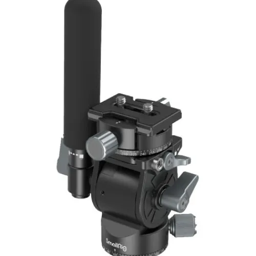 The SmallRig Lightweight Fluid Video Head 3457B is specially designed for video and photography. Featuring panoramic panning and compatibility with the Arca-Swiss QR system, it can be directly fitted with Arca-Swiss cages and L brackets. The centre of gravity can be adjusted forward or backward using the side knob, ideal for large lenses or when mounting the camera horizontally. The head includes a removable telescopic handle that supports a 360° swivel and a 1/4″-20 threaded hole for attaching accessories such as a magic arm, monitor, microphone, image transmitter, or camera. A built-in spanner is also provided for easy removal or installation of quick-release plates.