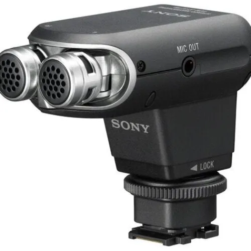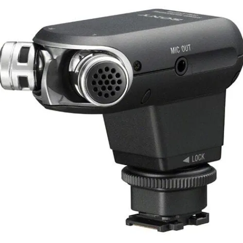 The Sony ECM-XYST1M Stereo Microphone attaches to the Multi Interface (MI) Shoe on Sony cameras to capture high quality sound recording. The highly portable microphone is powered by the camera battery and connects directly to most Sony cameras without any cables. With directional stereo pickup, ambient noise dampening and plug-in power support, the ECM-XYST1M ensures professional-quality audio for videos.