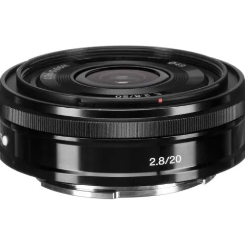 Start your wide-angle photography with the Sony E 20mm f/2.8, an ultra-compact pancake lens for APS-C E-mount cameras, offering a 30mm equivalent focal length.