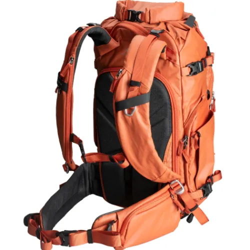 The backpack’s external hanging system includes straps on the front and sides, perfect for attaching tripods, skis, walking poles, lighting stands, and much more. You have the flexibility to attach a tripod to either side or front of the bag or utilise the optional bottom straps to secure it at the base. We’re all about supporting you (and your tripod!).