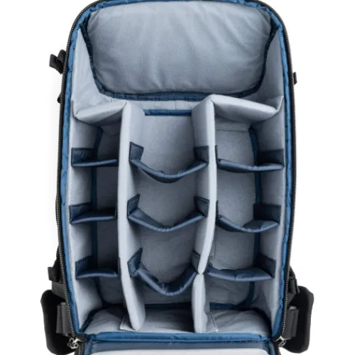 - Adjustable dividers accommodate large telephoto lenses, traditional photo gear, or personal items