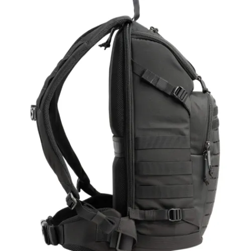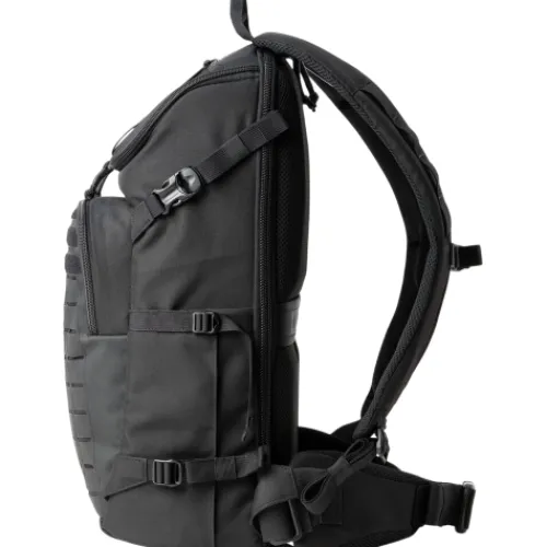 - Right side pocket with web cinch fits a water bottle or tripod using upper and lower compression straps with SR buckles for added security