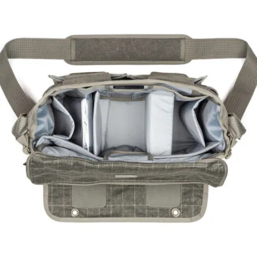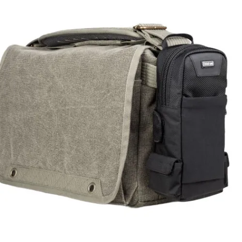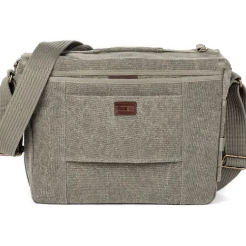 Designed for photographers on the move, the pinestone-coloured Retrospective 30 V2.0 Shoulder Bag from Think Tank offers a sleek, subtle design with ample storage. It fits two gripped DSLRs, three lenses, and a 15″ laptop, along with tablets and other accessories. The main compartment features a zippered opening that tucks away when not in use, while the hook-and-loop front flap allows quick access. A luggage handle pass-through flap on the back adds convenience for travel, and the front compartment with a zippered pocket keeps valuables secure. Plus, a seam-sealed rain cover ensures protection in bad weather.