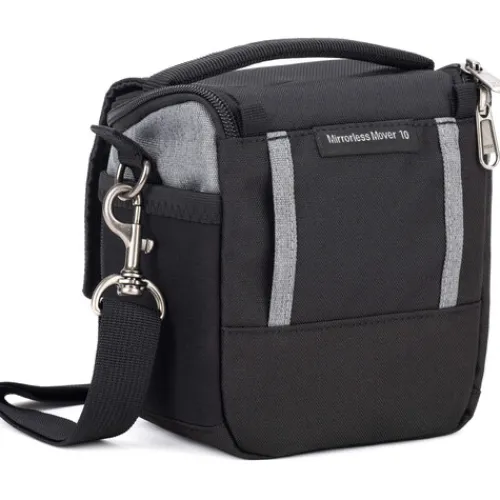 The Think Tank Photo Mirrorless Mover 10 Shoulder Bag in cool grey is designed to protect and transport your mirrorless system. It can fit a medium-sized mirrorless body with two lenses and accessories. The front zippered pocket and two side stretch pockets provide storage and organisation for your accessories. The flip top lid has a magnetic closure for quick and easy access when the bag is unzipped.
