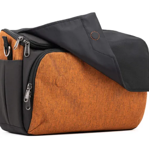 The Think Tank Photo Mirrorless Mover 30 Shoulder Bag in campfire orange is the perfect way to transport and protect your mirrorless system. It’s roomy enough to fit a large mirrorless body with four lenses and accessories. Store and organise your accessories in the front zippered pocket or the two side stretch pockets. The flip top lid has a magnetic closure for quick and easy access when the bag is unzipped.