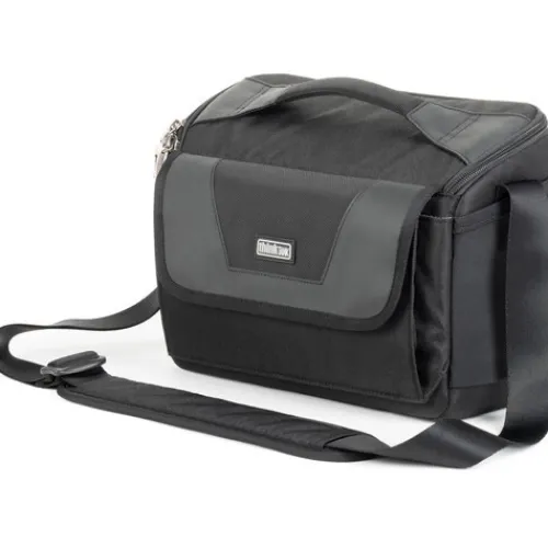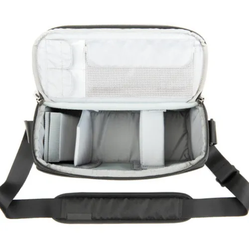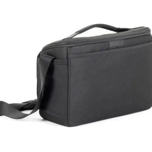 The Think Tank StoryTeller 8 is a structured shoulder bag designed to hold one DSLR or mirrorless camera body, up to four small standard zooms or prime lenses, an 8″ tablet, and other accessories. The Flip-Top lid and zippered closure provide quick and easy access to the main interior compartment, which features removable dividers, and the expandable front pocket can be used to store a tablet or additional accessories. A zippered valuables pocket is also included, as are expandable side pockets that can hold a water bottle and two dedicated memory card pockets that can be used to separate empty and full cards.