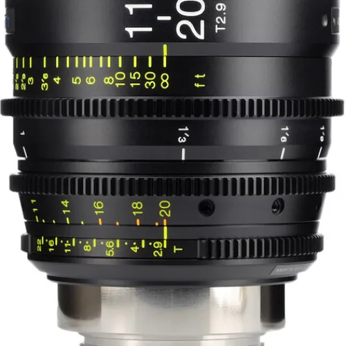 Interchangeable LPL, PL, Sony E, MFT, and Nikon F lens mounts are available separately for swapping with the EF mount, expanding the lens’s compatibility with additional cameras. The Tokina Cinema ATX 11-20mm incorporates low-distortion glass, and its 9-bladed iris produces attractive bokeh in out-of-focus areas. Focus (feet), iris, and zoom settings are marked on both sides of the lens barrel.