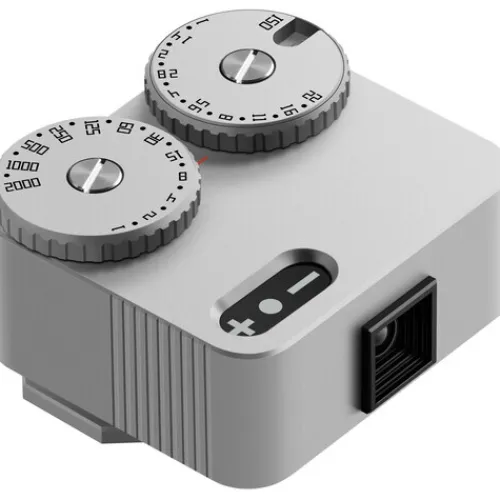 The silver, aircraft aluminium TTArtisan Light Meter II is an ultra-compact, cold-shoe mountable light meter designed for analogue film cameras. With its sleek, retro profile, it provides easy operation via two accessible dials. It supports shutter speeds from 1 to 1/2000 of a second, ISO settings from 25 to 6400, and apertures from f/1 to f/22, all in half-step increments.