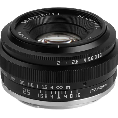 Compact and discreet, the Sony E-mount 25mm f/2 from TTArtisan is a low-profile manual lens ideal for portraiture, street scenes, and everyday shooting with a natural field of view. It allows focusing on subjects as close as 25 cm and offers excellent depth-of-field control with its bright f/2 aperture for selective focus. The seven-blade diaphragm also delivers pleasing bokeh quality.