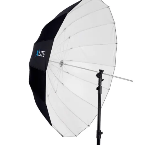 Parabolic umbrellas are a popular choice for portrait, people and fashion photographers, as they provide a smooth, distinctive light that can illuminate an entire person or small group with just one light source. The deeper shape of the Xlite Deep Parabolic Umbrella series gives the photographer better control of the light spread and allows them to focus and shape light by simply sliding the umbrella shaft in its holder. The strong glass fibre rods make this series remarkably reliable and sturdy, and it is available in two versions – Silver and White. The white version creates an even, diffused light with soft shadows, and the closer the umbrella is placed to the subject, the softer the shadows will be.
