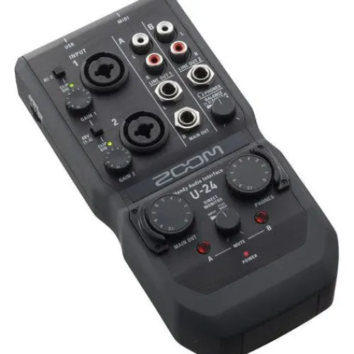 Inspired by our Zoom H-series recorders, the U-24 is equipped with high-performance, low-noise mic preamps (-119.5 dB EIN) that enable recording and playback at resolutions up to 24-bit/96 kHz. You can also use U-24 as a studio-quality headphone amp and listen to your favorite music in full fidelity.