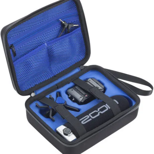 The Zoom CBF-1SP is a padded-shell carrying case designed to safeguard your F1 Field Recorder from shock and scratches. It offers ample space to store the F1 along with essential accessories, including a shotgun mic, windscreen, shockmount, stereo mini cable, AAA battery, and microSD card, keeping everything organised and protected while on the move.