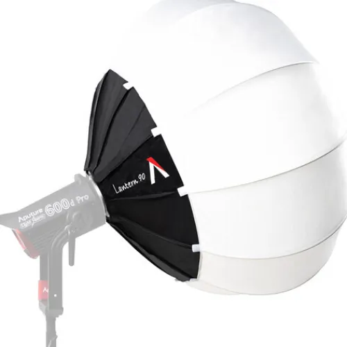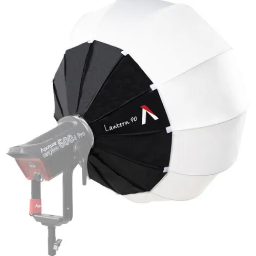 The Lantern 90 from Aputure is designed to be used with LED or strobe fixtures, providing near 360° soft light that spreads evenly over a large area. You can mount it horizontally or suspend it overhead on a boom to increase the ambient light level, reduce shadows, and allow more focused fixtures to do their job.