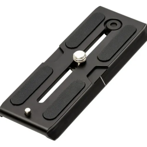 The Benro QR8PRO is a CNC machined aluminium slide-in camera plate with laser-engraved markings, designed to fit S8 and S8PRO video heads. The registration pin is positioned at the front of the plate to prevent twisting with certain video cameras. Rounded edges allow for quicker alignment, and the top of the plate features a non-slip rubber grip surface for added stability.