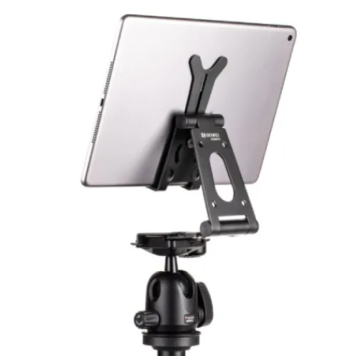 Get ready to expand your mounting capabilities with the ultra-compatible and versatile Benro ArcaSmart Tablet Holder, ideal for content creation, live streaming, virtual meetings, and more. This innovative support system features an extendable plate that can securely hold tablets when opened and smartphones when closed, with anti-skid rubber pads to prevent accidental slips. For added stability, the support plates can be opened when placed on a surface, revealing a dual-system quick release plate designed for both Arca-Style and RC2 compatible tripod heads. The quick release plate includes ¼”-20 and ¾”-16 mounting holes, while four built-in ¼”-20 accessory mounts offer additional expansion options. For ultimate convenience, this tablet holder folds up super-compact for easy storage and transport.