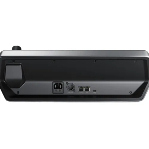 The Blackmagic Design ATEM 1 M/E Advanced Panel is a comprehensive hardware control panel for BMD ATEM switchers, providing hands-on, tactile control essential for broadcast studios. Connecting via Ethernet, it features an LCD information display with soft-touch menu buttons and rotary encoders for intuitive control programming. Each programmable button includes an LCD scribble strip for clear function display, with up to 20 inputs accessible by shifting the 10 input buttons. Curved indentations on the buttons help prevent incorrect keystrokes. Real-time control is enhanced by a 3-axis joystick for PTZ camera control and a weighted T-bar fader for adjusting transitions, wipes, and fades.