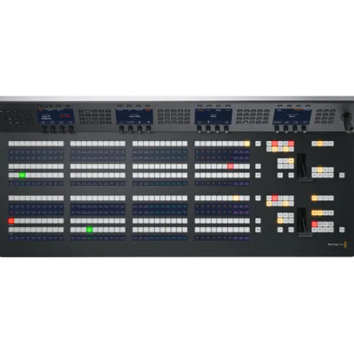 The ATEM 2 M/E Advanced Panel 40 is a sophisticated control interface designed for the separately available ATEM Constellation Switcher from Blackmagic Design. Featuring a wide array of buttons, knobs, two fader bars, and a 3-axis joystick, this panel allows you to customise your program and preview operations to suit your specific production needs.