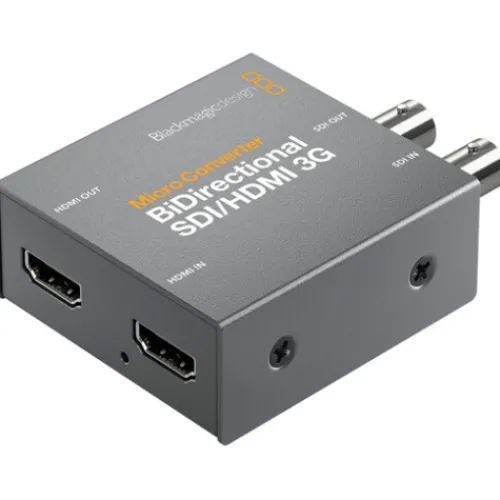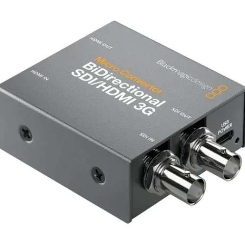 Connect your SDI and HDMI components with ease using the Blackmagic Design Micro Converter BiDirectional SDI/HDMI 3G. This small, bidirectional converter can convert SDI to HDMI and vice versa, even when using different standards. It supports resolutions up to DCI 2K in SDI and 1080p60 in HDMI. It also offers camera control conversion for Blackmagic HDMI cameras like the BMPCC 4K or 6K, allowing you to use them with an SDI-based live switcher. Other features include HDMI timecode support, SDI re-clocking for stability over long cable runs, support for a wide range of pro broadcast resolutions including cine-style 48 fps, and both HDMI and SDI embedded audio input and output.