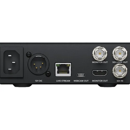The compact form factor allows you to fit it right into your broadcast setup, and it is compatible with the optional Teranex Mini Rack Shelf in case you want to install it in a 1 RU rack. Its dual AC/DC redundant power input is handy in case you lose mains power and you can utilize the 4-pin XLR input for DC power. The Web Presenter HD is also compatible with the Blackmagic ATEM Streaming Bridge to decode the streams back into HDMI or SDI signals for additional routing options.