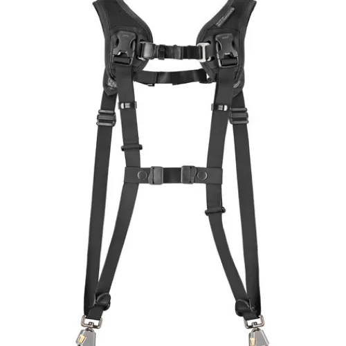 Adjustable straps help provide stability and keep the harness from slipping off your shoulders. To keep your cameras even closer, BlackRapid CoupleR Breathe Straps (available separately) can be attached to the front and back strap, preventing your cameras from excessive movements.