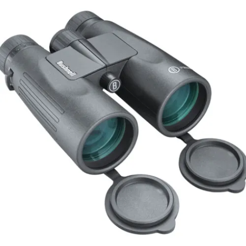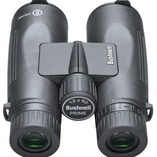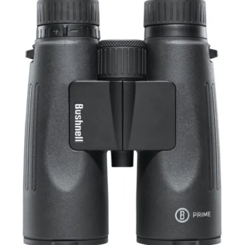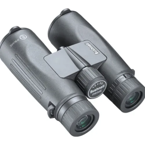These black Bushnell 12×50 Prime Binoculars offer a wide viewing angle with a comfortable exit pupil and eye relief, so you can take in the whole landscape without eye strain, even if you spend long hours glassing.