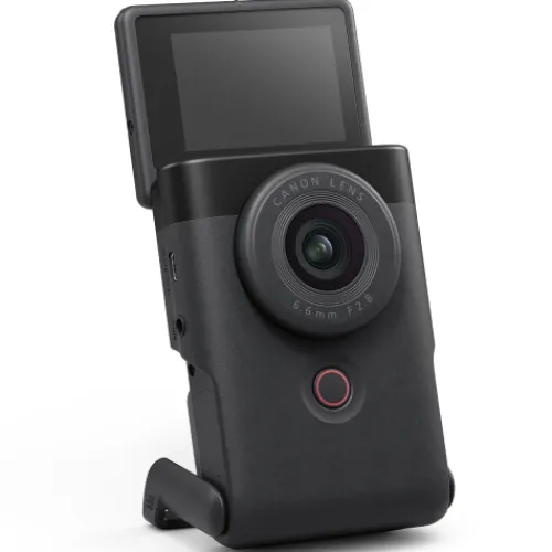 Create and share content in a unique way with the PowerShot V10. Perfectly designed for content creators, this camera has all the features you need to make your content stand out – including a built-in stand, microphone and lens.