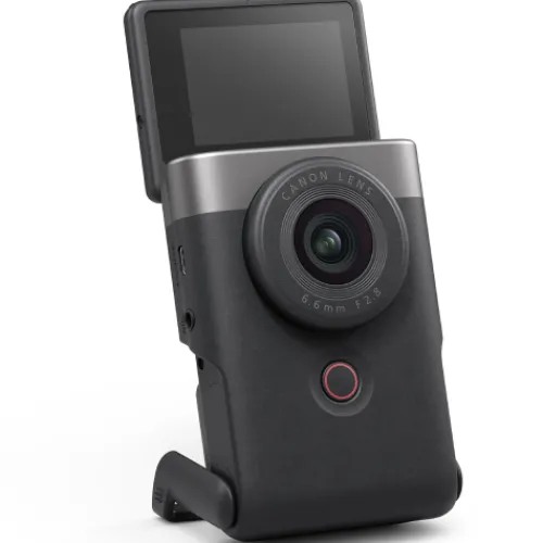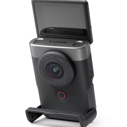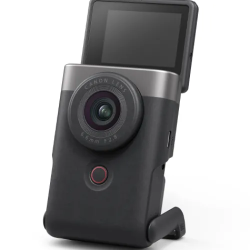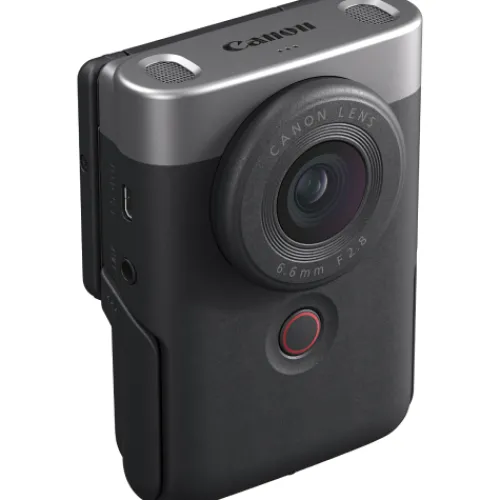 Create and share content in a unique way with the PowerShot V10. Perfectly designed for content creators, this camera has all the features you need to make your content stand out – including a built-in stand, microphone and lens.