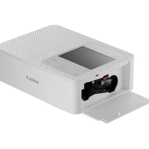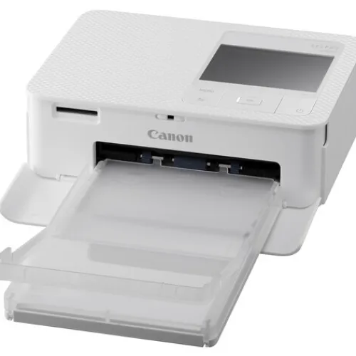 The ultra-compact Canon SELPHY CP1500 in sleek white design prints vibrant, professional-looking photos from a memory card, USB flash drive, or computer connection. The SELPHY is a portable photo printer that accepts four different paper sizes as well as small adhesive stickers. For printing 4 x 6 photos, an ink and paper set is included. Postcard-sized prints and a variety of other sets are optional. You can print in four sizes across all supported types: 4 x 6″, 3.5 x 4.7″, 2.1 x 3.4″ (stickers), and 2.1 x 2.1″. The SELPHY prints vibrant photos with a resolution of 300 x 300 dpi and 16.7 million colours.