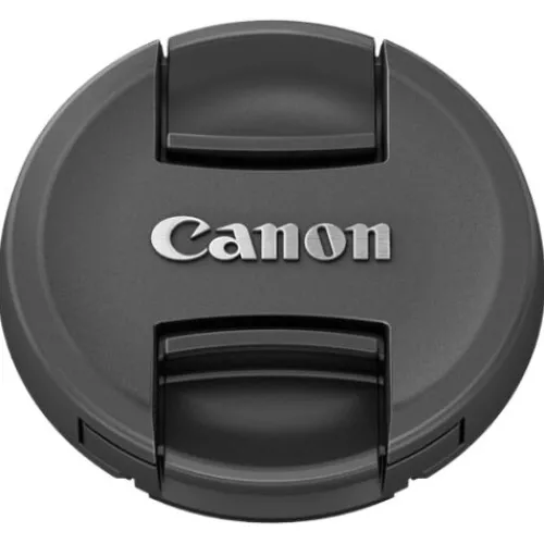 The Canon E-55 Lens Cap is a 55mm diameter cover with a centre pinch design and the Canon logo on the front. It protects the front of your lens from dust, moisture, and scratches when not in use, keeping your gear safe and ready for shooting.