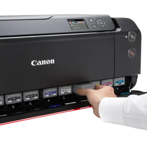 Featuring the signature red line found on Canon’s professional lenses, the imagePROGRAF PRO-1100 Professional 43.2 cm Wireless Inkjet Photo Printer is designed for wide-format printing with deep blacks, detailed gradations, and an extensive colour gamut that accurately reproduces even the most challenging hues. This printer employs FINE (Full-Photolithography Inkjet Nozzle Engineering) technology, and the 11-colour LUCIA PRO II pigment-based ink set delivers prints with enhanced gloss uniformity and anti-bronzing. The Chroma Optimiser further boosts glossiness, smooths the print surface, and broadens the colour range. Capable of printing up to 43.2 cm wide, the PRO-1100 also offers borderless printing up to 43.2 x 55.9 cm and accommodates media thicknesses from 0.01 to 0.07 cm.
