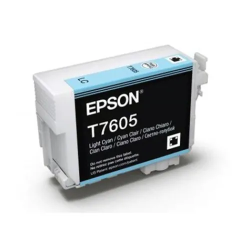 Epson T7605 SC-P600LC Light Cyan UltraChrome HD ink is compatible with the Epson SureColor SC-P600 A3+ printer and comes in 25.9ml cartridges.