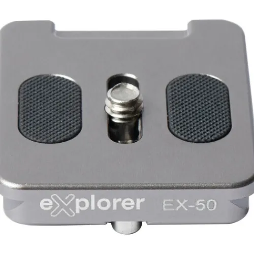The Explorer EX-50 Quick Release Plate from Explorer Photo & Video is a compact and lightweight accessory designed for Explorer ball heads and other Arca-type compatible heads and clamps. It’s perfect for mirrorless cameras, DSLRs, and various accessories. The EX-50 features non-slip rubber traction pads for a stable grip, and it uses a 1/4″-20 mounting screw for versatile attachment. For added security, it includes dual safety stops to prevent the plate from accidentally sliding out of compatible quick release clamps. Enhance your setup with the EX-50 Quick Release Plate for reliable performance and convenience.