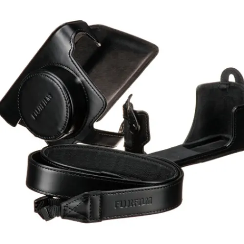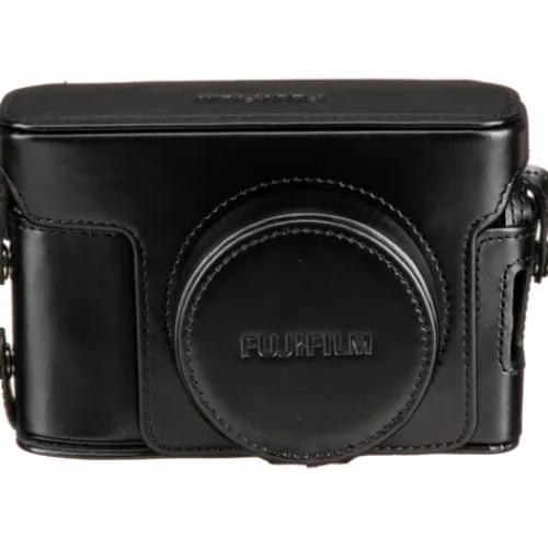 The LC-X100V Leather Case in black is the perfect companion for the FUJIFILM X100V digital camera. This formfitting design provides protection from light impacts and scratches, as well as improves the grip when handling and shooting. Crafted from luxurious leather, this case also allows access to the battery and memory card compartment when attached.
