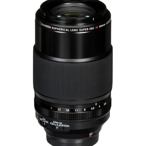 The 80mm Fujifilm macro lens offers a 1:1 magnification ratio for life-sized reproduction, projecting images at their actual size onto the sensor. This combined with a close focusing distance of 25cm make the lens great for macro photography of small subjects like insects, flowers, jewellery & other small objects.