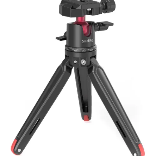 The SmallRig Tabletop Mini Tripod with Panoramic Ball Head is designed to support DSLR, mirrorless, smartphones and action cameras. It also doubles as a grip for handheld shooting. With precise and accurate calibration, the head allows for 360° panoramic rotation for panoramic shooting, and -90°/+45° front tilt, and -50°/+50° lateral tilt for multi-angle adjustments. The tripod is designed with rubber feet for a stable and slip-free foundation, and comes with an Arca-type plate for quick mounting and dismounting of your device.