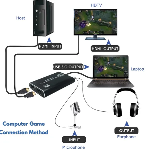 The HDMI Game Capture ensures a reliable high-quality video stream for glitch free usage up to 1920×1080@60fps (1080p).