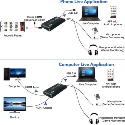 This unit makes live streaming accessible across most PC and software configurations. Designed to work, plug and play, on Windows, Mac and Linux; you are ensured a wide range of compatibility. You are able to go live through popular platforms such as Twitch, YouTube, OBS, Potplayer, VLC and many more. Basically, anything that will accept a standard webcam style signal, with the built-in conversion to USB Video Class (UVC) and USB Audio Class (UAC) data.