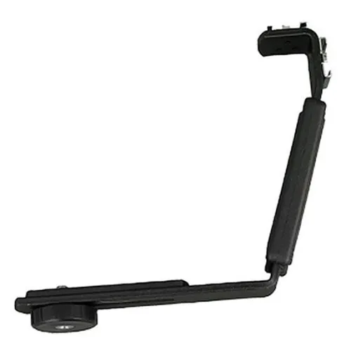 Video/L accessory bracket with sturdy hand grip attaches to the tripod mount on your video camera and provides two extra accessory shoes (cold) for mounting video lights, microphones etc. – also handy for mounting external microphones and lights on video cameras that don’t have an accessory shoe.