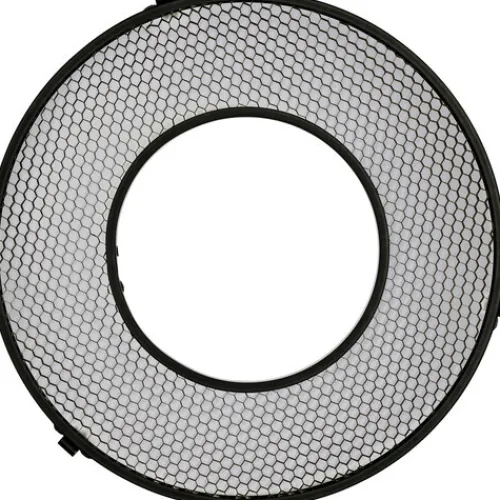 Godox’s 20° Honeycomb Grid for the R1200 Ring Flash Head serves as a modifier that effectively reduces the beam spread of the flash head, eliminating spill light and enabling precise selective lighting.