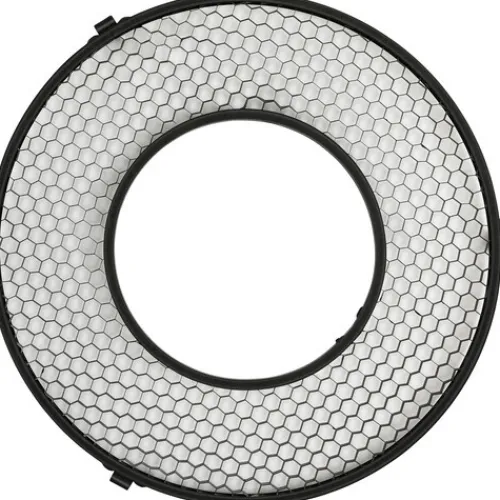 Godox’s 40° Honeycomb Grid designed for the R1200 Ring Flash Head functions as a modifier that restricts the beam spread of the flash head, effectively eliminating spill light and enabling selective lighting.