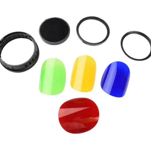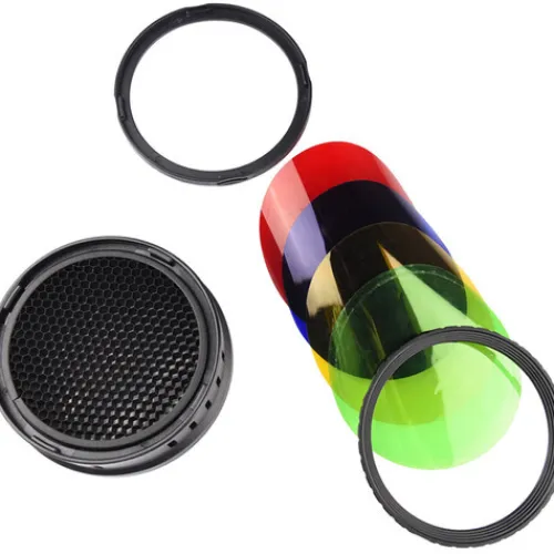 The Godox Barndoor Kit for AD400Pro Outdoor Flash features a versatile 4-way barndoor set, a honeycomb grid, and individual filters in green, blue, red, and yellow. With the barndoors, you can precisely direct light onto specific areas of your subject while controlling spillage. The honeycomb grid refines the light beam into a soft-edged circle, perfect for nuanced lighting effects such as highlighting hair. Additionally, the included colour filters offer ample creative opportunities to enhance your photography.