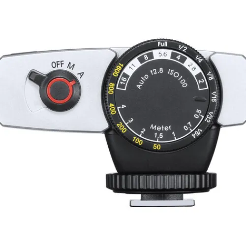 - With a vintage inspired design and a distinct black finish, the unit has a simple dial that correlates ISO with apertures, power levels, and shooting distances. For example, if you want to shoot at 5′ with an ISO of 400, the dial lines up f/4 and 1/8 power.