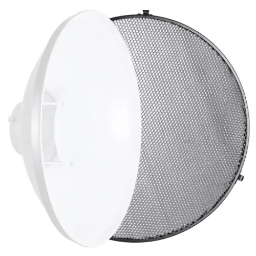 The Honeycomb Grid for 42cm Beauty Dish offers photographers the ability to precisely control the direction and spread of light, resulting in sharper shadows and enhanced creativity in lighting setups. Designed to attach to the front of the reflector, this grid effectively narrows the beam spread of the light, allowing for greater control over spill light and providing the directional precision needed for selective lighting. By narrowing the light’s spread, the grid helps to focus and direct the illumination exactly where it’s needed, offering photographers greater flexibility and control over their lighting scenarios.