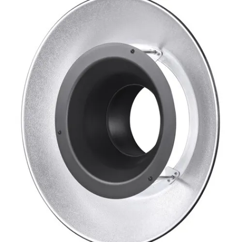 The Godox Reflector designed for the R200 Ring Flash features a silver interior that is specifically optimized to enhance light output, while also offering a moderate level of directional control for more tailored lighting effects.