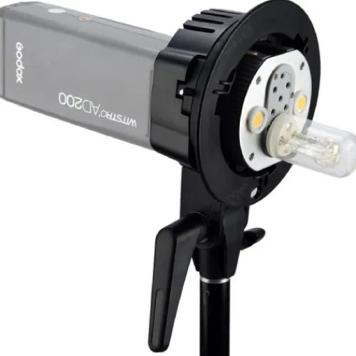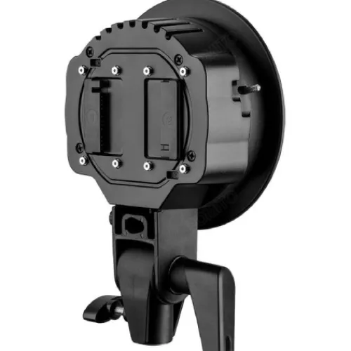 The Godox Dual Power Flash Bracket for AD200 lets you mount two AD200 Pocket Flashes together, so you can get double the flash power. It has a Bowens S-type front accessory mount and a 5/8″ receiver for light stands.