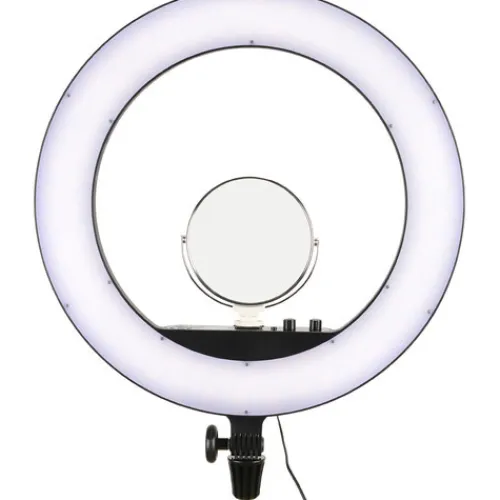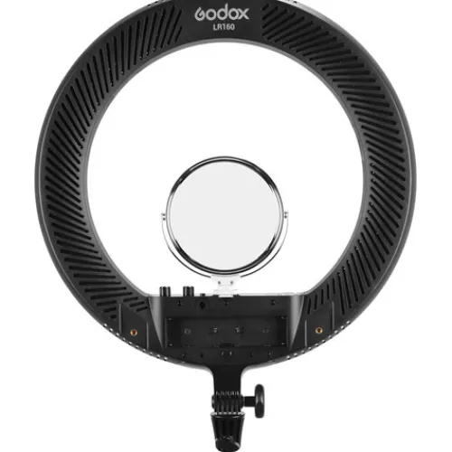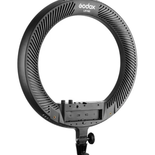 Step up your lighting game with the sleek Black LR160 Bi-Colour Ringlight from Godox. Featuring a distinctive-shaped light fixture with variable colour temperature ranging from 3300 to 8000K, this light offers versatility to match other fixtures, ambient light conditions, or for creative expression. Mountable to an optional grip head or stand, you can shoot through it for a silky smooth, near-shadowless effect that flatters your talent’s complexion. Perfect for selfies, it includes a smartphone holder and a mirror for convenient posing. The unique circular shape of the light also creates captivating catchlights in your subject’s eyes, adding an extra touch of charm to your shots.