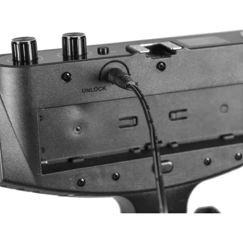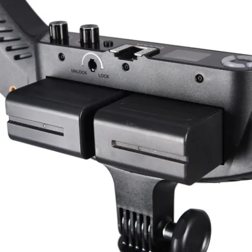 You can make colour and light intensity adjustments from 10 to 100% with two knobs on the fixture. The LR160 runs on AC power via its included adapter, but it can also be powered by two optional NP-F970 lithium-ion batteries in locations where mains power is unavailable.